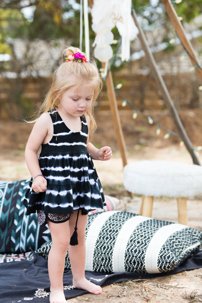 Find your tribe in the My Tribe short, made of pre-washed soft gold lurex striped cotton. Tassel ties drawstring. On seam pockets for your littles treasures. The elastic waistband and ties ensure a perfect fit at the waist.